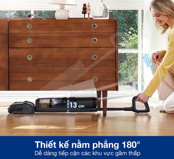 Nhờ công nghệ HyperStretch, Tineco S6 Stretch Extreme có khả năng nằm phẳng hoàn toàn 180 độ với thiết kế thông minh, giúp luồn lách dưới gầm giường, tủ và các ngóc ngách khó tiếp cận, nơi bụi bẩn thường tích tụ nhiều nhất.