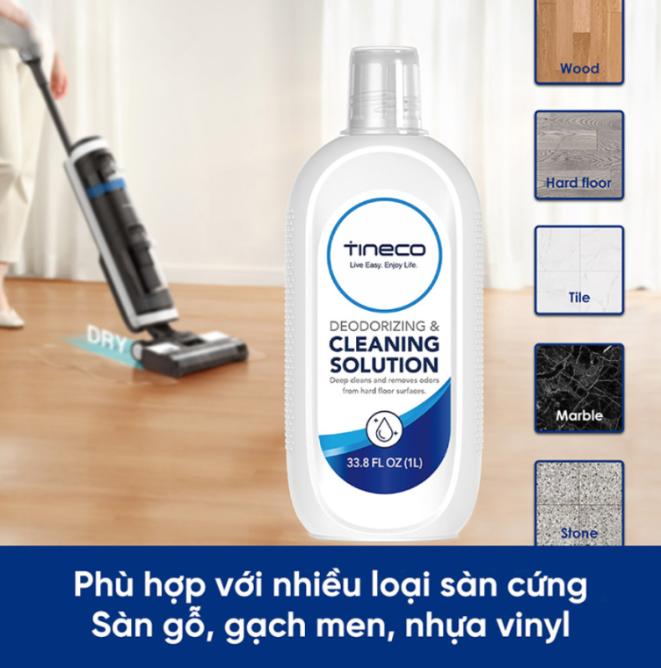 Nước lau sàn Tineco được thiết kế với công thức đặc biệt, giúp làm sạch nhanh chóng các vết bẩn cứng đầu trên nhiều loại bề mặt sàn khác nhau như gỗ, gạch men hay đá. Điều này giúp người dùng yên tâm sử dụng mà không lo gây hư hại cho sàn nhà.