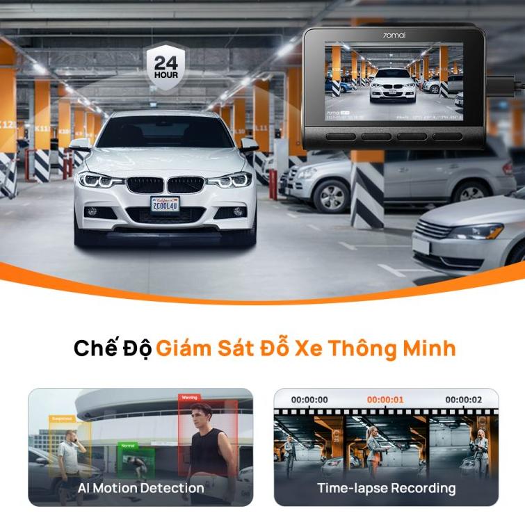 Một trong những tính năng đáng giá nhất của Bộ Hardwire Kit 70mai UP03 chính là khả năng giám sát đỗ xe thông minh suốt 24 giờ. Khi xe tắt máy, thiết bị sẽ tự động chuyển sang chế độ Parking Mode để tiếp tục ghi hình, giúp bạn bảo vệ xe ngay cả khi không có mặt tại hiện trường. Khi xe khởi động trở lại, hệ thống sẽ tự động quay về chế độ ghi hình bình thường. Tính năng này đặc biệt hữu ích trong việc giám sát những tình huống bất ngờ xảy ra khi xe đang đỗ, như va chạm hoặc phá hoại.