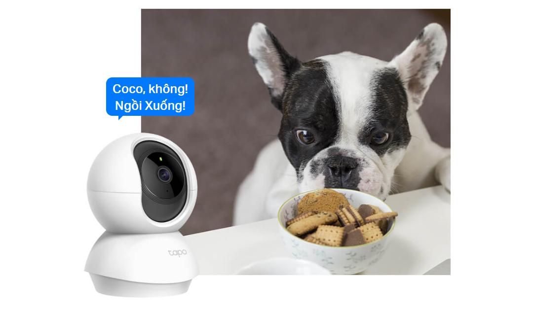 Một điểm cộng khác của Tapo C200 là khả năng đàm thoại hai chiều. Camera được trang bị micro và loa tích hợp, cho phép người dùng nghe âm thanh trong phòng và nói chuyện trực tiếp thông qua ứng dụng trên điện thoại.