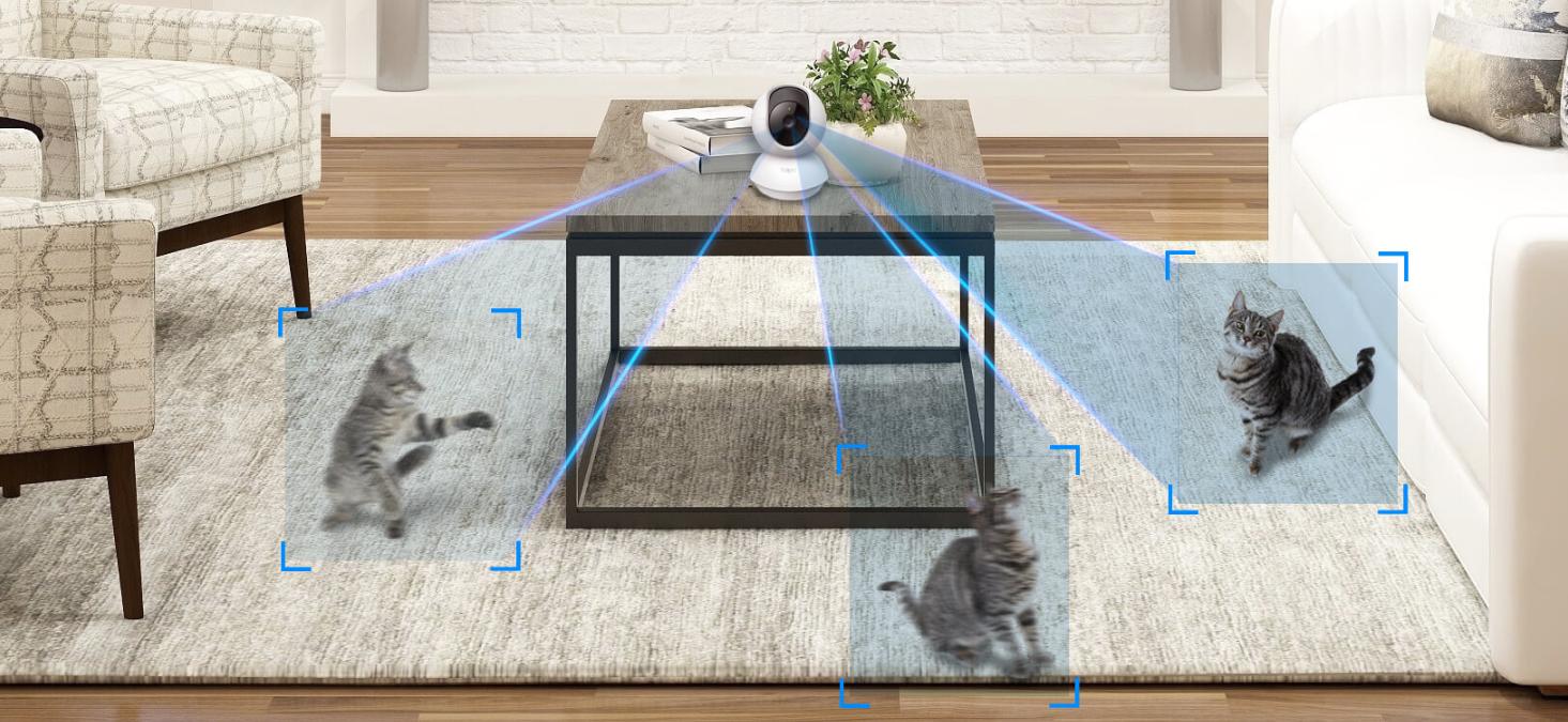 Nhờ cơ chế xoay này, người dùng không cần phải lắp đặt nhiều camera trong cùng một khu vực. Chỉ cần một chiếc Tapo C200 cũng có thể quan sát toàn bộ căn phòng bằng cách điều khiển hướng camera trực tiếp trên điện thoại.