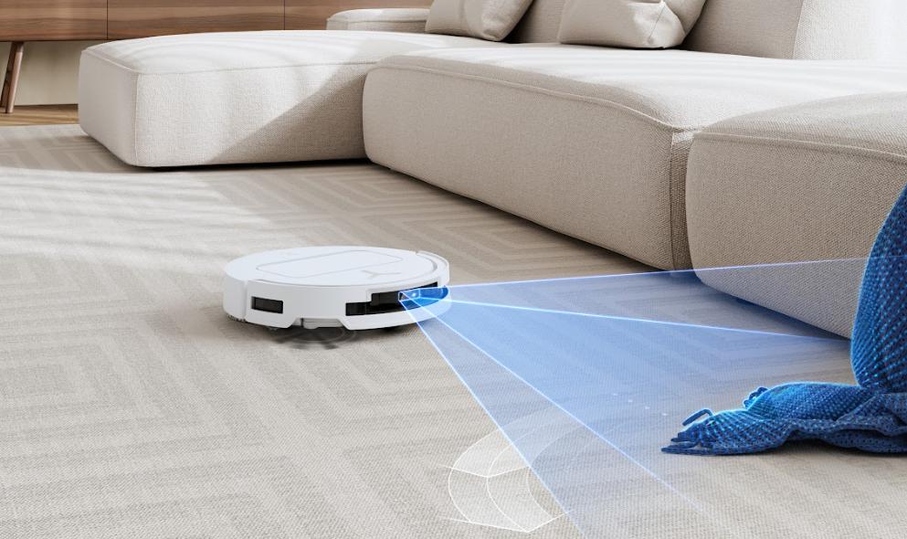 Robot Ecovacs được trang bị cảm biến hiện đại, giúp nhận diện các vật cản như thảm, dây điện hay chân bàn ghế để tránh va chạm hoặc mắc kẹt. Điều này đảm bảo robot có thể hoạt động hiệu quả trên nhiều loại bề mặt khác nhau mà không gặp khó khăn.