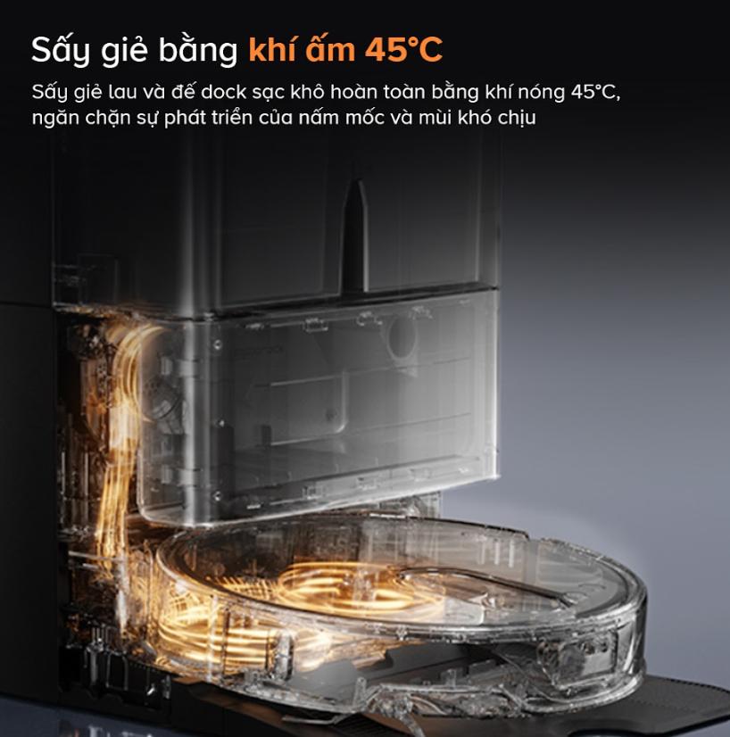 Dock sạc của Roborock Qrevo Slim tích hợp đến 8 chức năng trong 1, bao gồm giặt khăn lau bằng nước nóng 60°C và sấy khô bằng khí nóng 45°C. Người dùng sẽ không cần phải lo lắng về việc vệ sinh thủ công giẻ lau sau mỗi lần sử dụng. Đây là một bước tiến lớn giúp tiết kiệm thời gian và công sức cho người dùng.