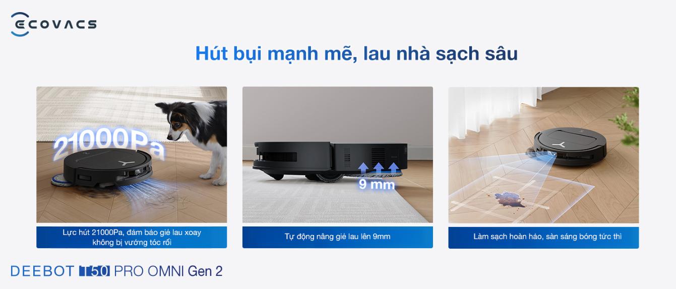 Một số tính năng nổi bật của Robot hút bụi lau nhà Ecovacs Deebot T50 Pro Gen 2