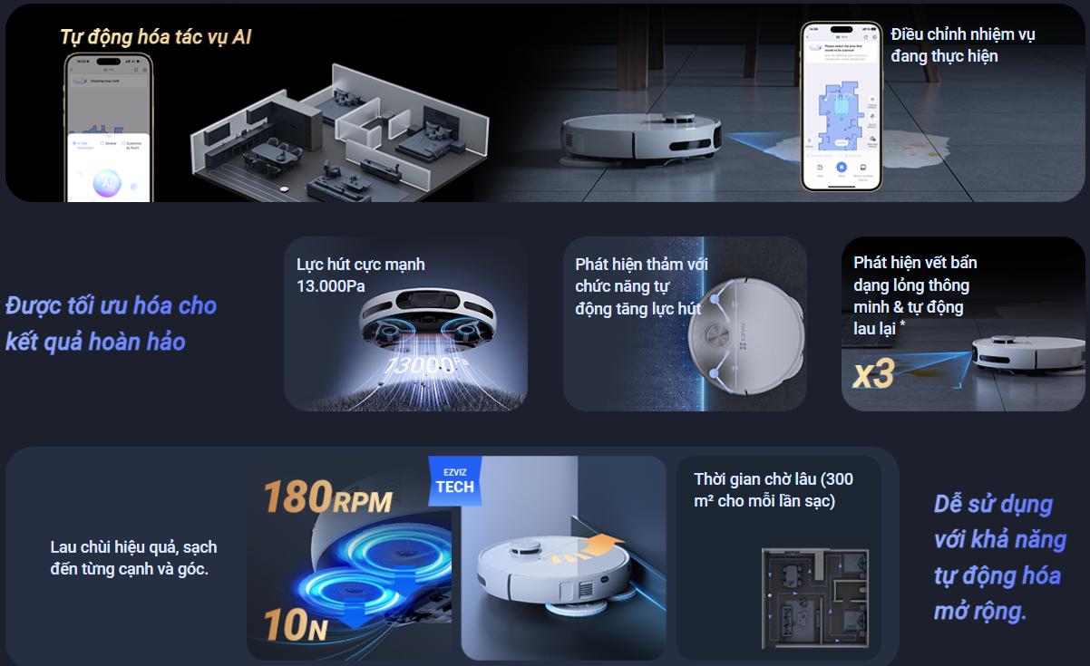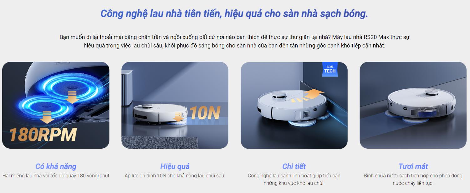 Một số tính năng nổi bật của Robot hút bụi lau nhà Ezviz RS20 Max