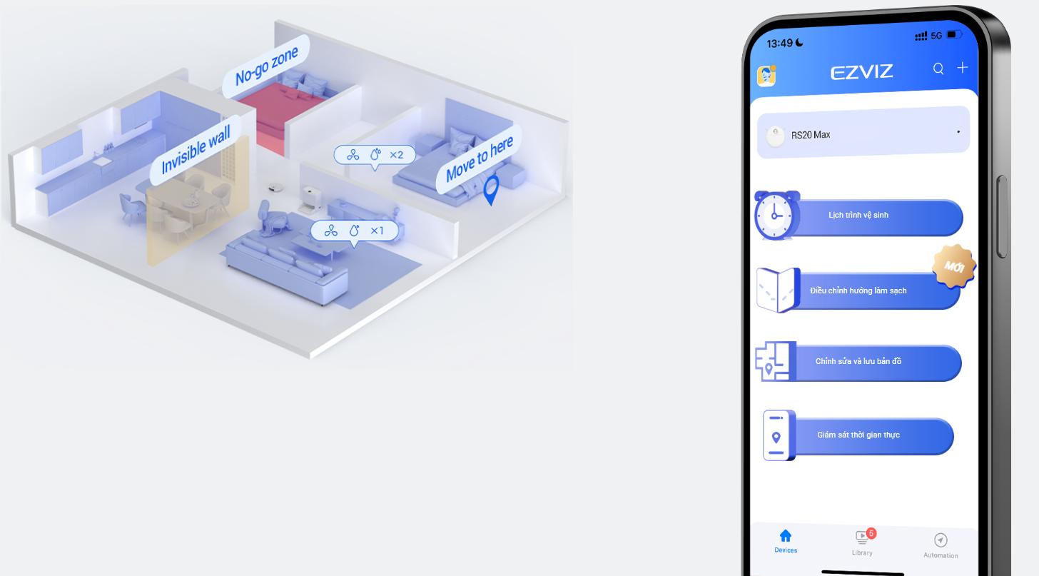 Robot hút bụi Ezviz RS20 Max sử dụng hệ thống định vị LDS LiDAR để lập bản đồ chính xác ngôi nhà của bạn và lên kế hoạch tuyến đường làm sạch tối ưu. Kết hợp với công nghệ AI tiên tiến, robot có khả năng nhận diện hơn 108 vật thể phổ biến trên sàn nhà và tránh chướng ngại vật một cách mượt mà. Điều này giúp giảm thiểu nguy cơ va chạm hoặc bị kẹt trong quá trình hoạt động, tăng độ tin cậy và hiệu quả làm sạch.