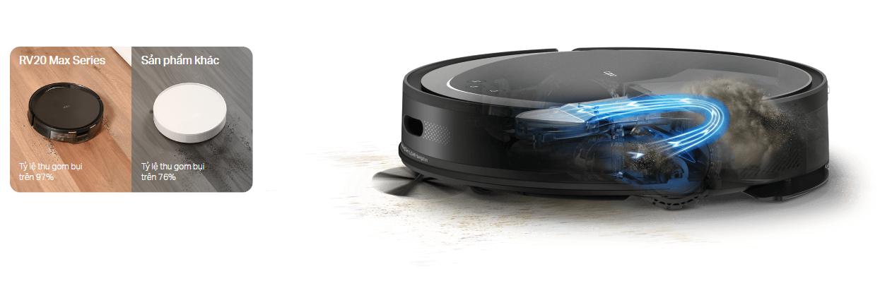 Với lực hút mạnh mẽ lên đến 5300Pa, Tapo RV20 Max Plus dễ dàng làm sạch các loại bụi bẩn, lông thú cưng, tóc và các hạt bụi nhỏ trên mọi bề mặt sàn như gạch, gỗ hay thảm. Đây là một điểm cộng lớn giúp robot hoạt động hiệu quả ngay cả trong những môi trường nhiều bụi bẩn.