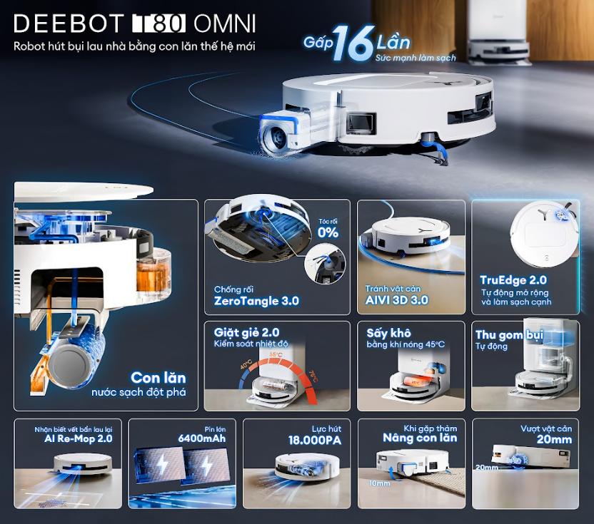 Nếu bạn đang tìm kiếm một robot lau nhà cao cấp, bền bỉ và hiệu quả vượt trội, hãy chọn ngay Ecovacs Deebot T80 Omni, giải pháp làm sạch thông minh hàng đầu đến từ Ecovacs.