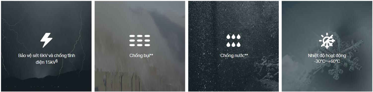 - Thiết kế ngoài trời bền bỉ: Kết nối ổn định với vỏ chống chịu thời tiết chuẩn IP65, chống sét ±6kV và chống tĩnh điện ±15kV
