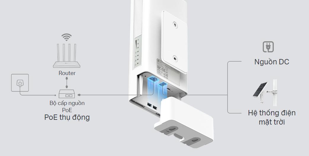 - Nguồn PoE/DC: Hỗ trợ chuẩn 802.3af và PoE thụ động, thuận tiện khi triển khai.