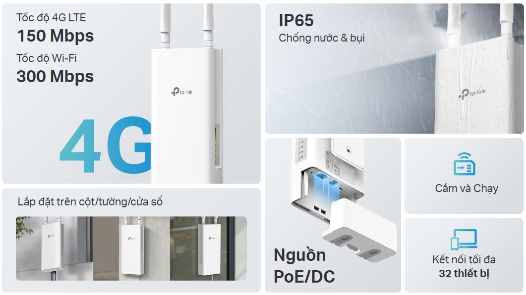 Các tính năng nổi bật của Router Wi-Fi 4G Ngoài Trời TP-Link TL-MR100 Outdoor