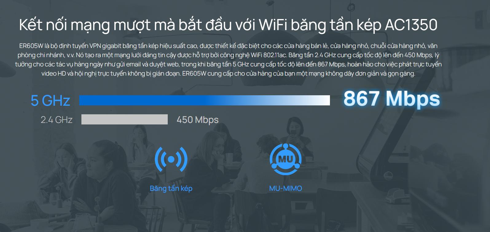 Với cổng LAN/WAN Gigabit, ER605W đảm bảo tốc độ truyền tải dữ liệu nhanh chóng và ổn định. Điều này giúp cải thiện trải nghiệm người dùng khi thực hiện các tác vụ như xem video chất lượng cao, chơi game trực tuyến hoặc làm việc trên các ứng dụng yêu cầu băng thông lớn.