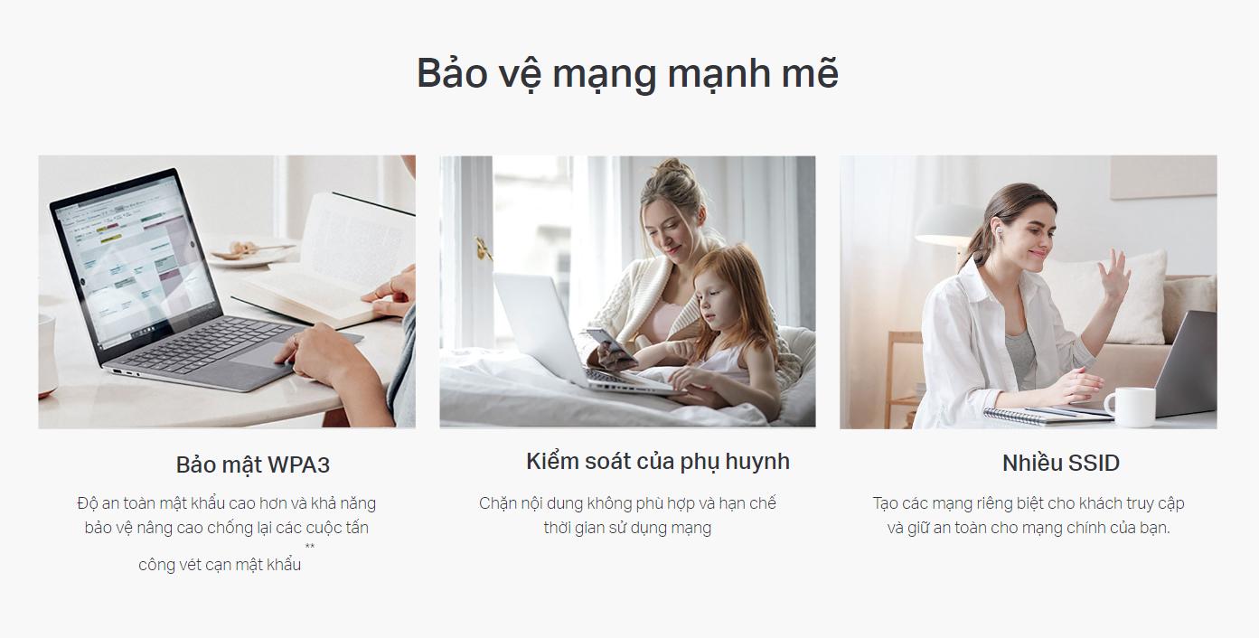 TP-Link EX521 hỗ trợ chuẩn bảo mật WPA3 mới nhất, mang lại lớp bảo vệ an toàn hơn cho mạng WiFi của bạn. Điều này giúp ngăn chặn các cuộc tấn công mạng và bảo vệ dữ liệu cá nhân của người dùng một cách hiệu quả hơn so với các chuẩn bảo mật cũ.