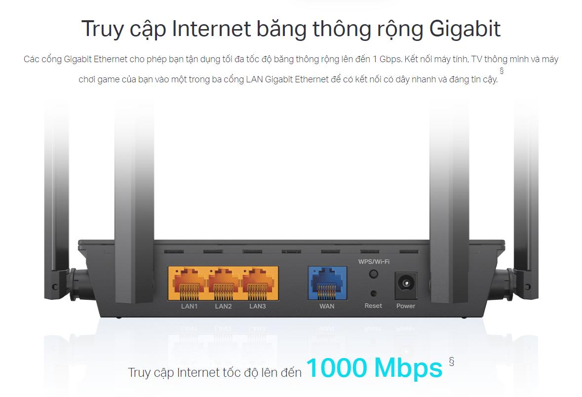 Cổng kết nối: 1 cổng WAN Gigabit + 3 cổng LAN Gigabit (10/100/1000 Mbps).