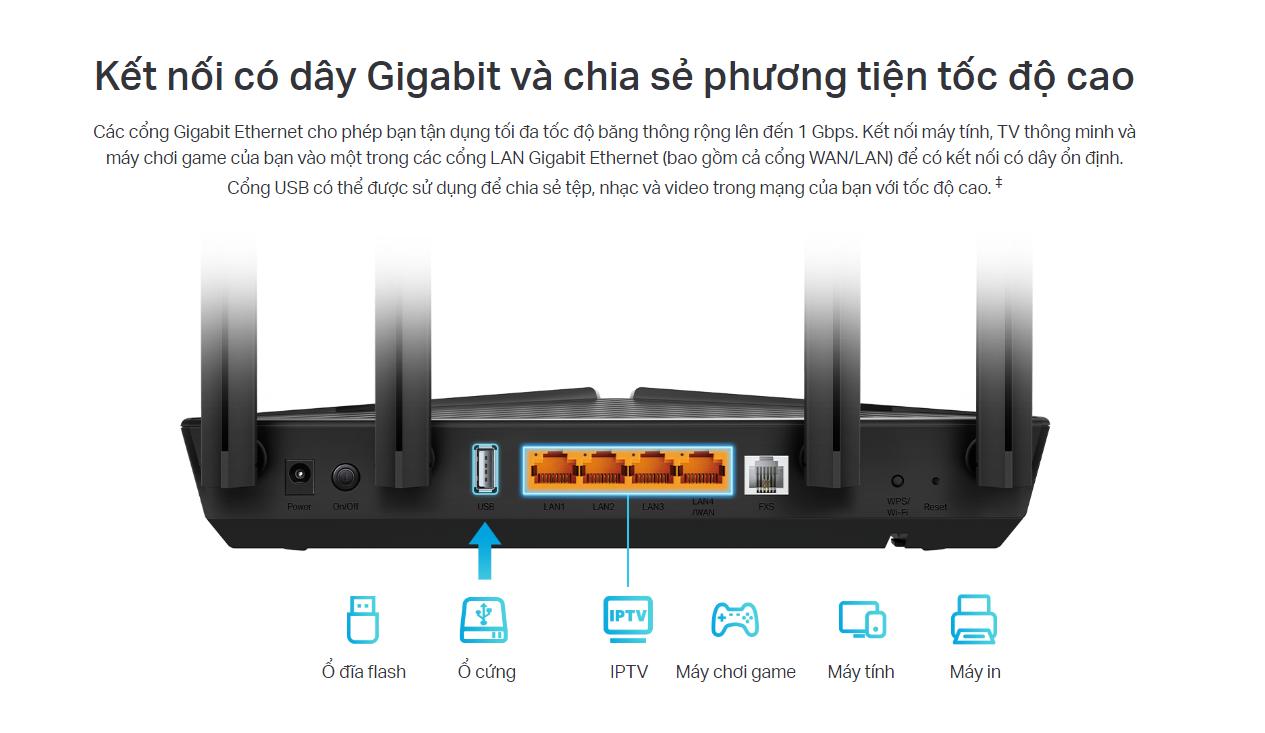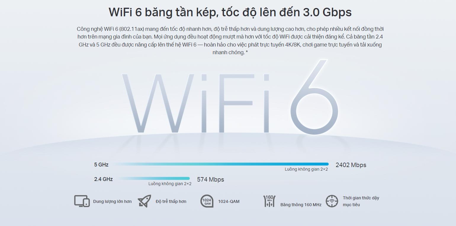 Tính năng: EasyMesh, MU-MIMO, OFDMA, VoIP, IPTV, WPA3
