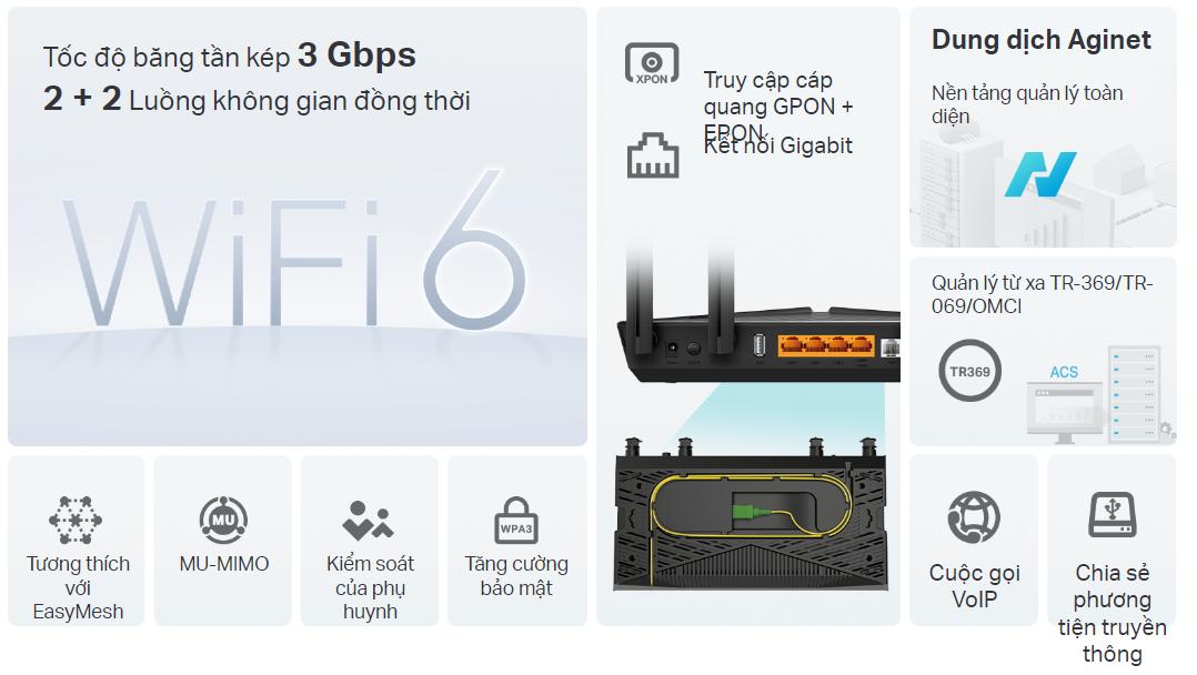 Một số tính năng nổi bật của Router WiFi 6 XPON AX3000 TP-Link XX530v