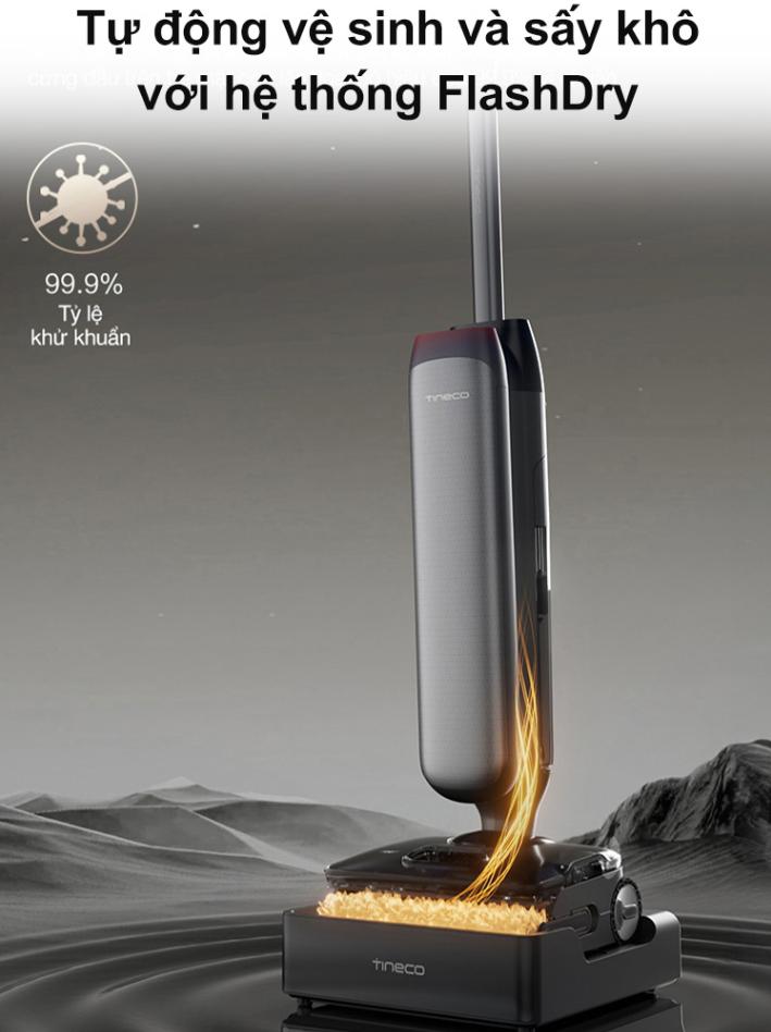 Quên đi việc phải tự tay vệ sinh chổi lăn bẩn thỉu. Tineco S9 Artist Steam Pro tích hợp hệ thống FlashDry tự động vệ sinh và sấy khô hoàn toàn.