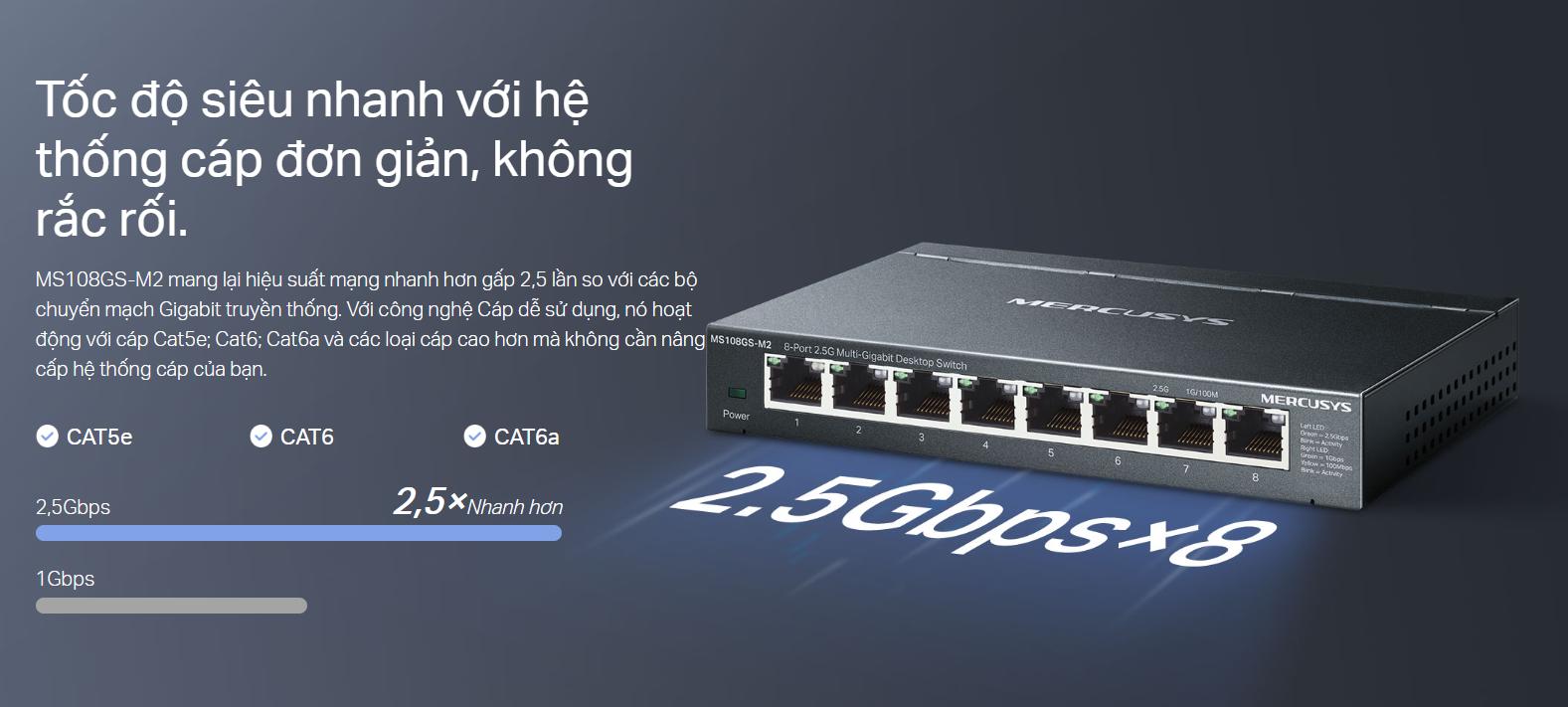 (Switch 8 Cổng 2.5G Đa Gigabit Mercusys MS108GS-M2 chính hãng)