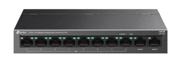 - 10 cổng 10/100 Mbps: Gồm 8 cổng PoE+ và 2 cổng thường.