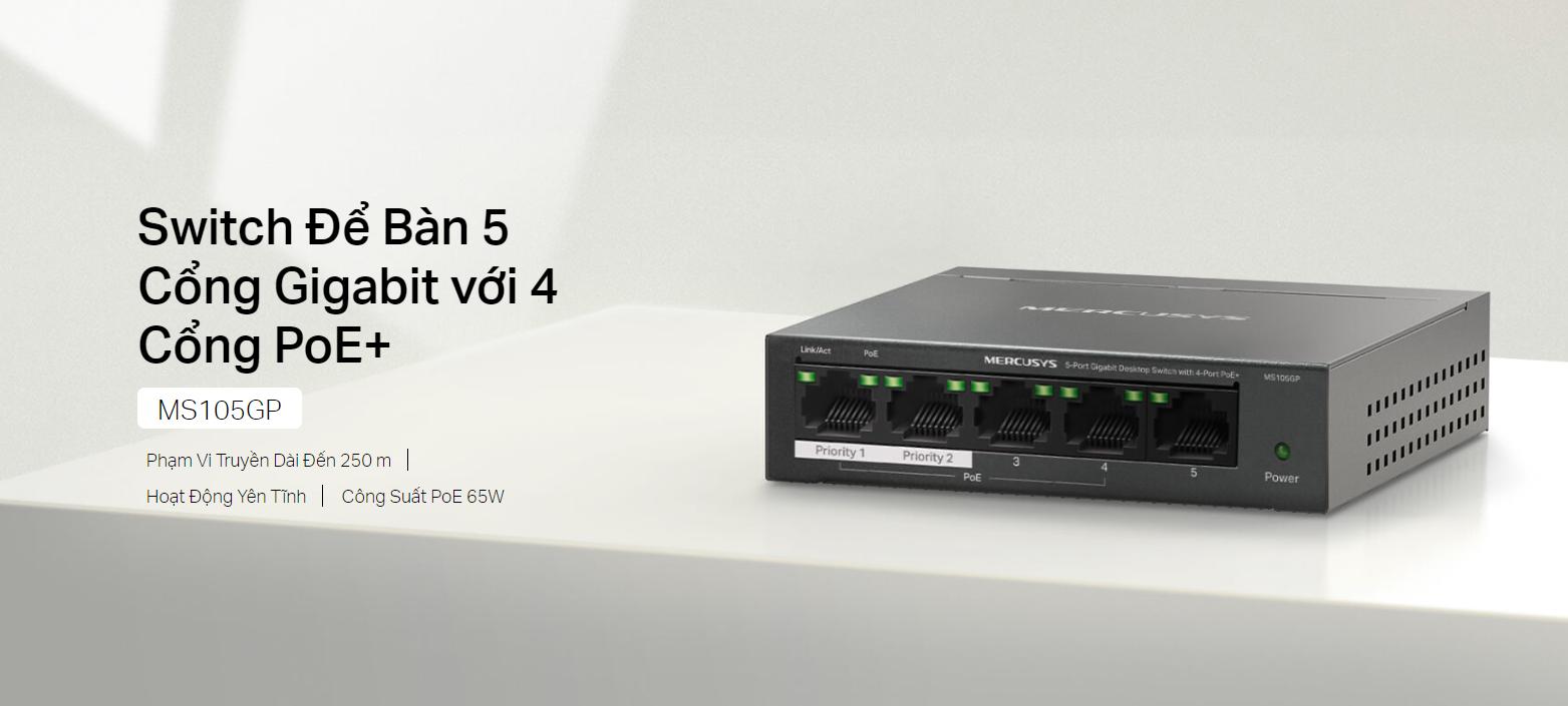 (Switch để bàn 5 Cổng Full Gigabit Mercusys MS105GP chính hãng)