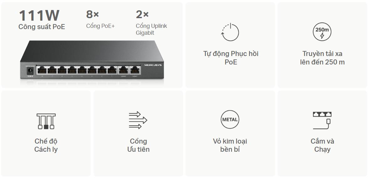 (Switch Gigabit 10 Cổng Mercusys MS110GMP chính hãng)