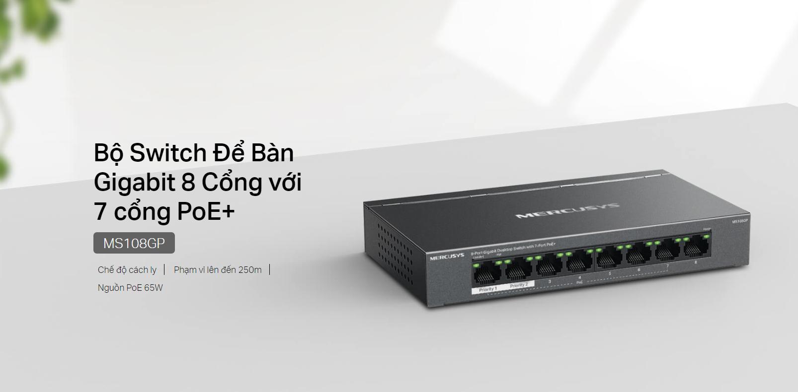 (Switch Gigabit 8 Cổng Mercusys MS108GP chính hãng)