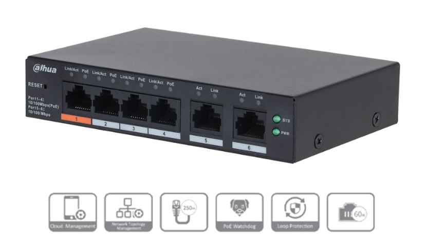 Một số tính năng nổi bật của Switch PoE 6 port DAHUA DH-CS4006-4ET2ET-60
