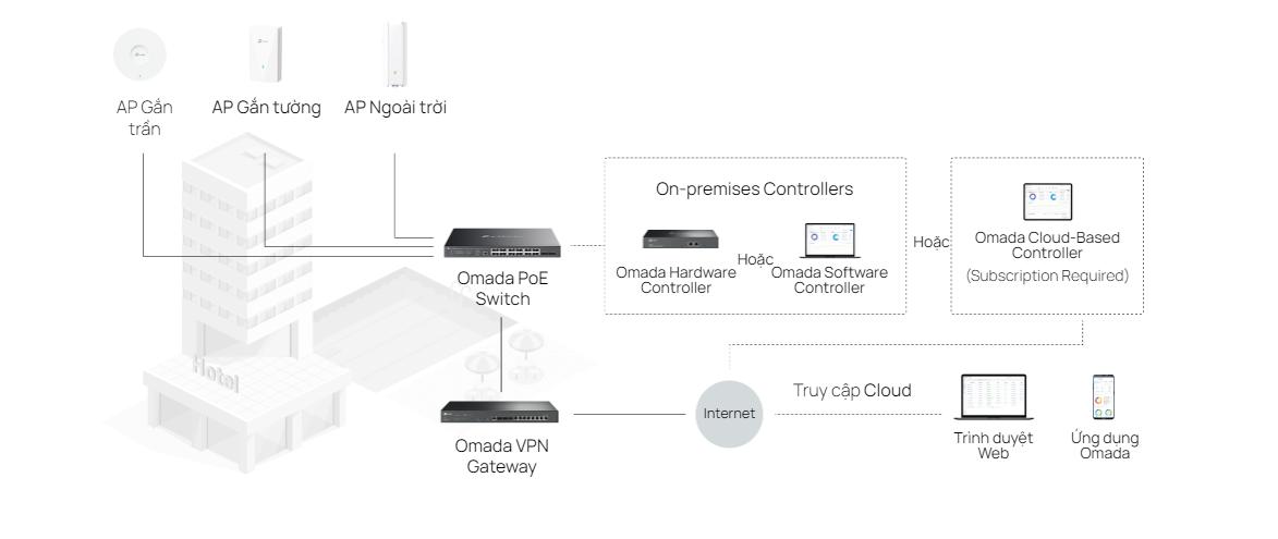 Switch SG2452LP tích hợp hoàn hảo với nền tảng Omada SDN (Software Defined Networking), cho phép quản lý tập trung thông qua giao diện web hoặc ứng dụng di động. Người dùng có thể dễ dàng thiết lập, giám sát và tối ưu hóa hệ thống mạng từ xa một cách nhanh chóng và tiện lợi.