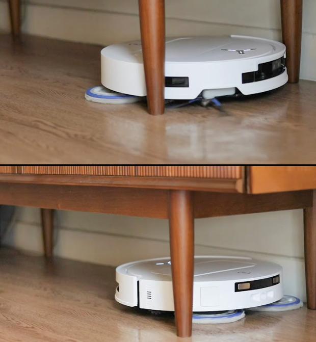 Ecovacs T50 Pro được thiết kế với kiểu dáng siêu mỏng, hiện đại và nhỏ gọn. Với chiều cao chỉ 95mm, robot Ecovacs dễ dàng di chuyển vào các khu vực thấp như gầm giường, gầm ghế hay gầm tủ để làm sạch triệt để.