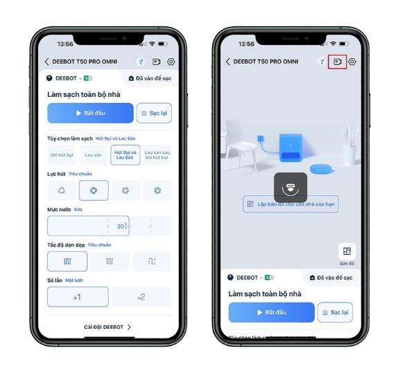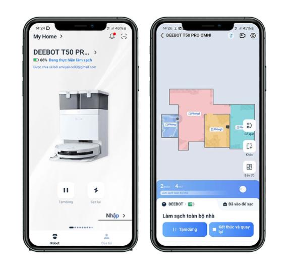 Người dùng có thể dễ dàng điều khiển thiết bị thông qua ứng dụng trên điện thoại thông minh. Ứng dụng này cho phép bạn lập lịch làm sạch, tùy chỉnh chế độ hoạt động và theo dõi tiến trình làm sạch mọi lúc mọi nơi. Đièu khiẻn từ xa mà không cần thao tác trên chính con robot.