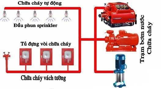 Các tòa nhà cao tầng, trung tâm thương mại và khu công nghiệp thường trang bị hệ thống sprinkler (đầu phun chữa cháy tự động). Khi nhiệt độ môi trường vượt ngưỡng, đầu phun sẽ tự động kích hoạt, xả nước trực tiếp vào khu vực cháy, giảm thiểu rủi ro lan rộng.