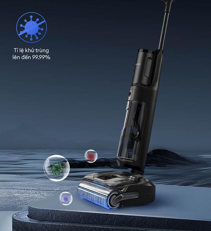 Máy còn được trang bị cảm biến con quay hồi chuyển, giúp di chuyển mượt mà và tiết kiệm công sức. Bình chứa nước sạch phía trước tối ưu trọng tâm, hỗ trợ lau sàn hiệu quả hơn. Công nghệ điện phân nước tiên tiến tạo dung dịch khử trùng trực tiếp từ nước máy, đạt tỷ lệ khử khuẩn 99,99%, mang lại sự an toàn tối đa cho gia đình.