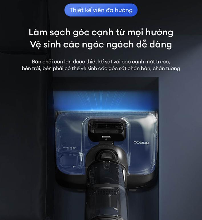 Với thiết kế nằm phẳng 180° và chiều cao thân máy chỉ 13cm, Tineco Switch S7 Stretch dễ dàng tiếp cận những khu vực khó vệ sinh như gầm giường, ghế sofa hay tủ thấp. Đầu máy linh hoạt rẽ hướng ở góc 45° ngay cả khi nằm phẳng, giúp người dùng dễ dàng làm sạch mọi ngóc ngách mà không cần di chuyển đồ đạc.