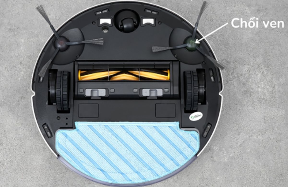 Bên cạnh đó, robot còn được trang bị chổi vẹn phụ trợ, kết hợp với chổi chính, giúp làm sạch bụi bẩn ở các góc khuất và sát chân tường, đảm bảo không gian luôn sạch sẽ toàn diện.