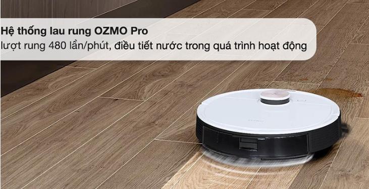 Hệ thống lau rung Ozmo Pro kiểm soát lượng nước bơm xuống giẻ lau, cho phép người dùng điều chỉnh thông qua ứng dụng. Với số lượt rung lên đến 480 vòng/phút (tùy model), công nghệ này vừa tăng hiệu quả vệ sinh vừa giảm tiếng ồn trong quá trình dọn dẹp, phù hợp với không gian sinh hoạt yên tĩnh.