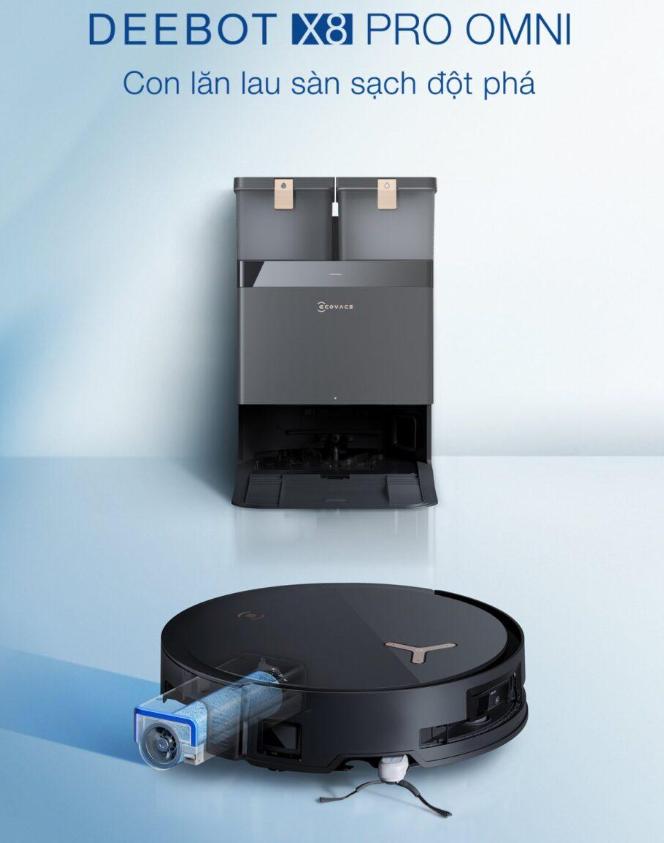 Robot hút bụi thông minh thế hệ mới Ecovacs X8 Pro Omni Giải quyết mọi vết bẩn cứng đầu