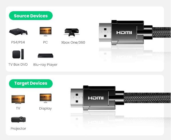 Cáp HDMI Ugreen 70323 tương thích với nhiều thiết bị khác nhau như TV, máy chiếu, màn hình máy tính, đầu phát Blu-ray, PS4/PS5, Xbox, laptop và các thiết bị hỗ trợ HDMI khác. Sự linh hoạt này giúp bạn dễ dàng kết nối và sử dụng trong nhiều tình huống khác nhau.