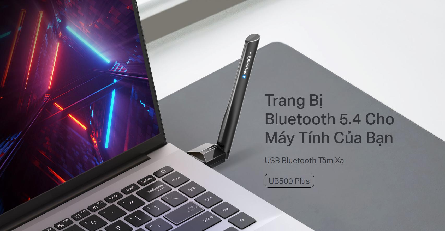 USB Bluetooth 5.4 Tầm xa TP-Link UB500 Plus mang đến khả năng kết nối Bluetooth mạnh mẽ và ổn định với tầm xa vượt trội. Thiết bị hỗ trợ chuẩn Bluetooth 5.4, đảm bảo tốc độ truyền tải nhanh và tiết kiệm năng lượng, lý tưởng cho máy tính bàn và laptop, giúp kết nối dễ dàng với các thiết bị như tai nghe, loa, bàn phím và chuột không dây.