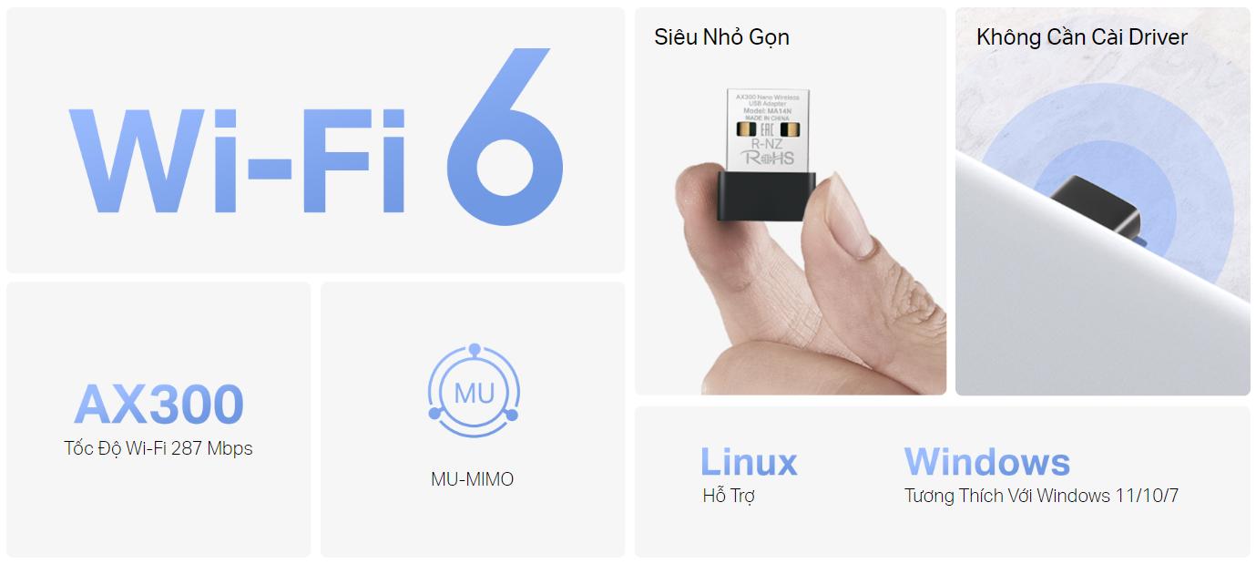 Một số tính năng cơ bản của USB Thu Wi-Fi 6 Nano Mercusys MA14N