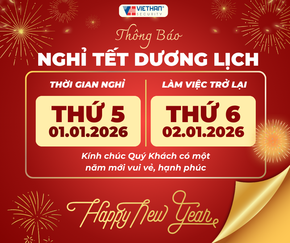 Nhân dịp Tết Dương Lịch 2026, Công ty Việt Hàn Security xin trân trọng thông báo đến Quý Khách Hàng và Quý Đối Tác lịch nghỉ lễ như sau: