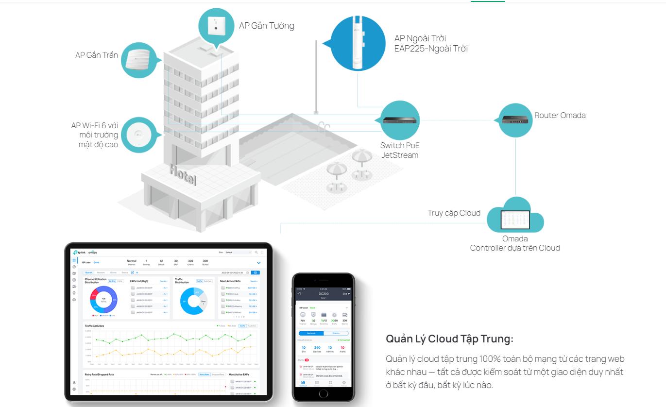 Một điểm nổi bật khác của sản phẩm là khả năng tích hợp với nền tảng quản lý tập trung Omada SDN. Điều này cho phép người dùng dễ dàng cấu hình, giám sát và quản lý toàn bộ hệ thống mạng từ một giao diện duy nhất, dù bạn đang ở bất kỳ đâu.